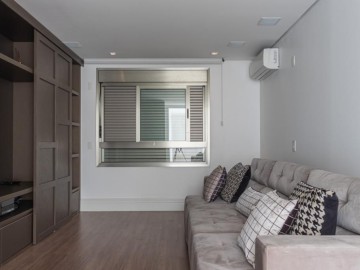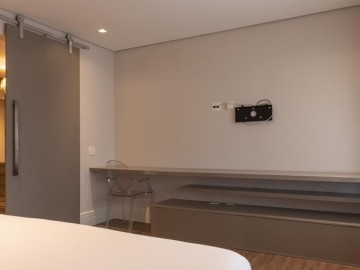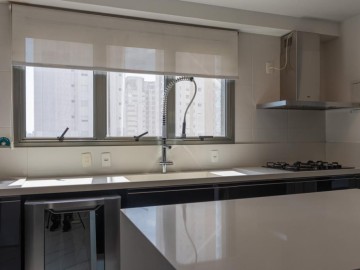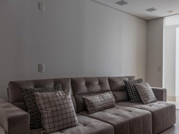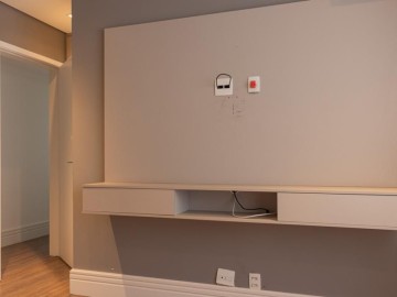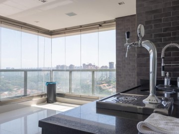 Apartamento pronto para morar e com fino acabamento, com piso em mármore, porcelanato e madeira demolição. Com living amplo e uma vista fantástica para área verde do Brooklin. Ar condicionados inverter em todos os ambientes. Sistema de automatização total que abrange, iluminação, ar, som TVs, Sala Cinema, tudo através do Aplicativo.