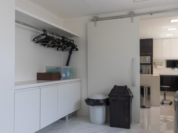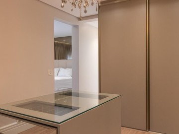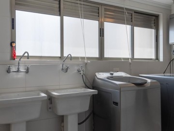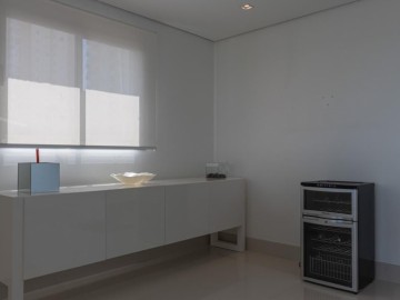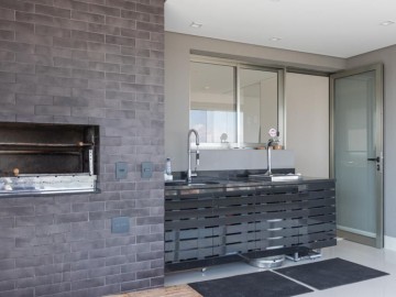 Varanda Gourmet com churrasqueira, Chopeira e cozinha de apoio totalmente independente, espaço de jogos com mesa de pôquer e Bilhar. O apartamento possui algumas peças de arte onde se destaca um Lustre exclusivo de Murano com fios de ouro feito à mão, Pianos Fritz Dobbert, Poltrona Donna Nevascos.