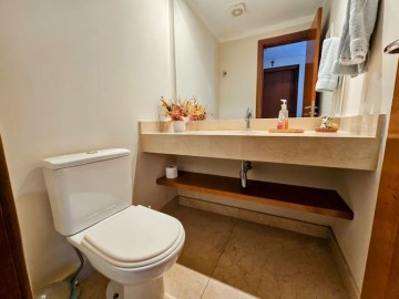 A planta original seriam 4 suítes, mas uma das suítes foi transformada em escritório, mas se for necessário, é fácil de reverter, pois hoje a planta está com 3 suítes + 1 amplo home office! Possui ar condicionado na suíte master. O imóvel possui 1 lavabo, + 4 banheiros!
