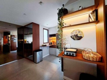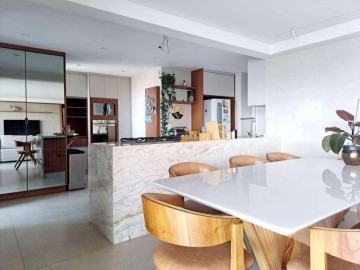 Apartamento à venda com 145 metros quadrados, com 3 dormitórios sendo (3 suítes), lavabo, vista livre, escritório com porta acústica, cozinha integrada com forno e cooktop, infra toda instalada para ar condicionado, caixas de som instaladas na sala, varanga gourmet com churrasqueira, Wc empregada e 2 vagas de garagem.