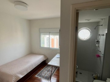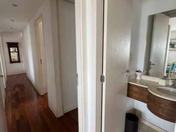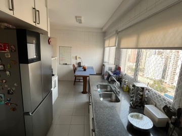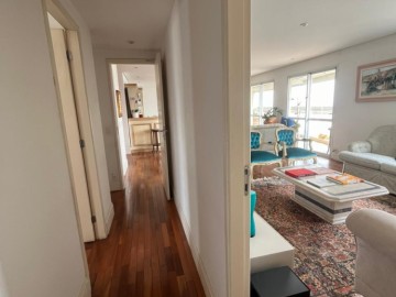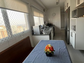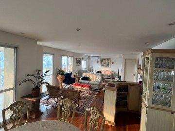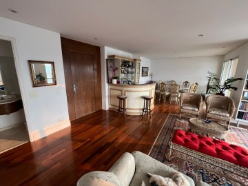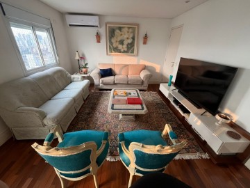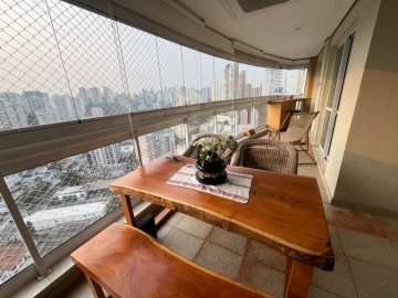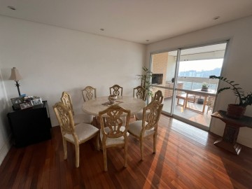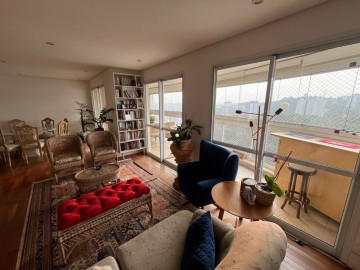 Apartamento de 173 metros quadrados, com bela vista para o Morumbi. São 3 suítes, sendo uma master com closet e hidromassagem. Ampla sala 3 ambientes (TV, estar e jantar) e lavabo, integrada a varanda gourmet com churrasqueira. Dependência para empregados (quarto e banheiro). Totaliza 5 banheiros, contando as suítes, o lavabo e o banheiro de empregados. Apartamento rico em armários planejados em todos os ambientes. Hall privativo, aquecimento a gás e 3 vagas de garagem. Apartamento acomoda confortavelmente uma família (casal com filhos).