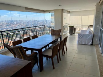 Apartamento de alto padrão com vista panorâmica à venda, com área de 213 metros quadrados, possui 3 dormitórios (sendo 3 suítes), 5 banheiros e 3 vagas de garagem determinadas.
