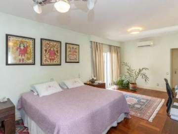 São 3 suítes amplas, com banheiros espaçosos, master com closet (pode reverter para 4° suíte), hidromassagem, armários de qualidade. Conta com antessala para o corredor dos dormitórios, onde você monta seu home office com conforto, living enorme para 3 a 4 ambientes com varanda muito aconchegante em formato L, e excelente área gourmet. Piso em madeira de lei e ar-condicionado. Sala de jantar separada da sala de almoço, que se integra com a varanda gourmet com churrasqueira. A cozinha muito espaçosa, tem balcão americano, super iluminada e área de serviço com dependências de empregada.