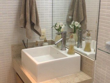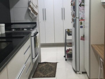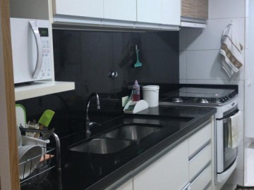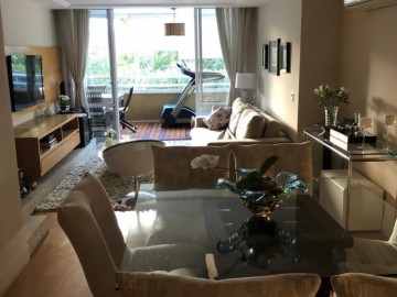 Apartamento à venda com área de 130 metros quadrados, possui 2 dormitórios (sendo 2 suítes), todos com armários, 3 banheiros, 2 vagas de garagem + depósito.