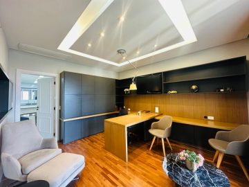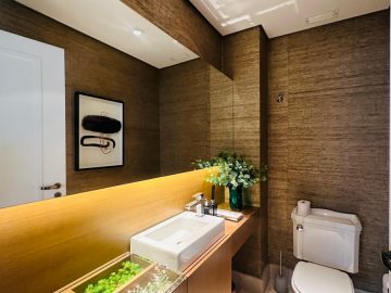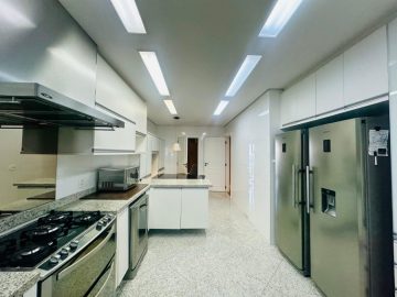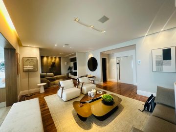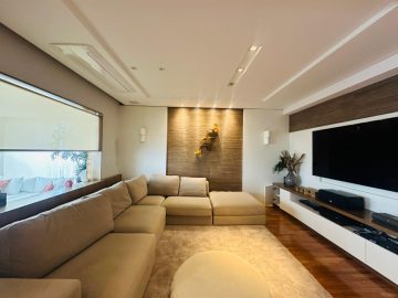 O mesmo possui área de 300 metros quadrados, 3 dormitórios (sendo 3 suítes), 5 banheiros, 1 lavabo, e 4 vagas de garagem.