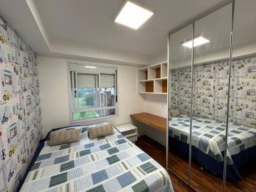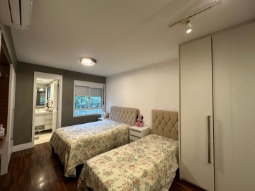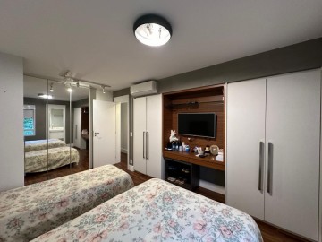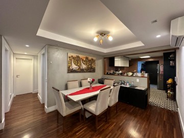 Apartamento à venda com área de 142 metros quadrados, possui 3 dormitórios (sendo 2 suítes), 3 banheiros, 2 vagas de garagem.