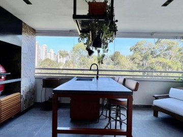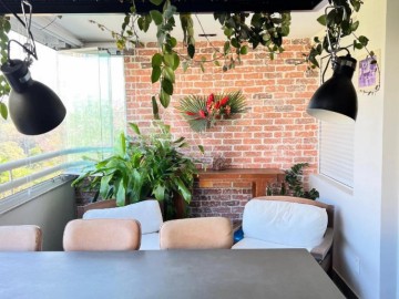 Apartamento à venda com área de 141 metros quadrados, possui 2 dormitórios (sendo 2 suítes), 5 banheiros, e 2 vagas de garagem.