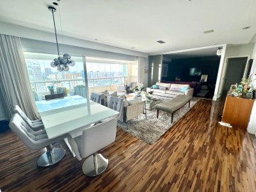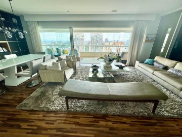 Apartamento para locação com área de 211 metros quadrados, possui 3 dormitórios (sendo 3 suítes), 5 banheiros, e 4 vagas de garagem