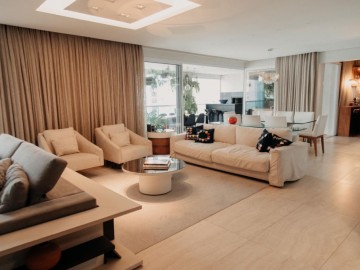 Apartamento à venda com área de 194 metros quadrados, composto por 3 excelentes suítes, sendo que a principal possui um closet e uma deliciosa banheira sobreposta. Imagine um living super confortável e espaçoso, integrado com a varanda gourmet super equipada, para momentos incríveis em família e amigos. A cozinha possui uma copa com adega, uma bancada com eletros de alta qualidade e acesso à varanda. No living foi projetado um espaço que pode ser usado como um escritório, atualmente tem um piano black maravilhoso! A varanda tem uma vista muito gostosa parcialmente livre e um andar alto. Os ambientes estão com ar-condicionado, todos em perfeito estado.