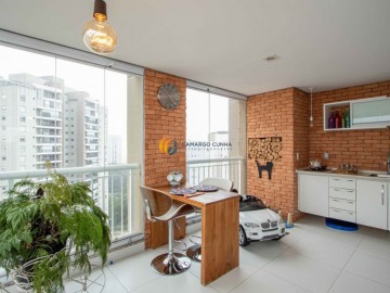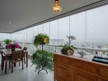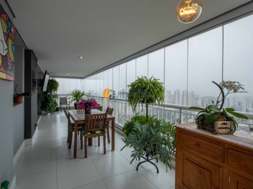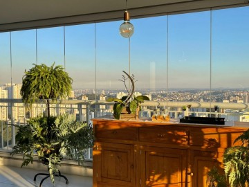 Varanda gourmet panorâmica com 35 m2, com cozinha e fogão cooktop. Vista sensacional.