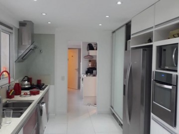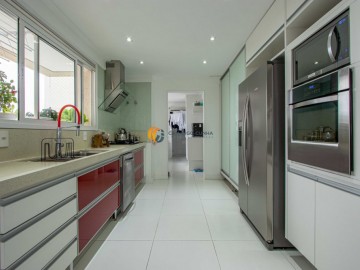 Cozinha espetacular, equipada com fogão cooktop, forno elétrico, microondas, coifa de vidro design ultramoderno, triturador, purificador de água.