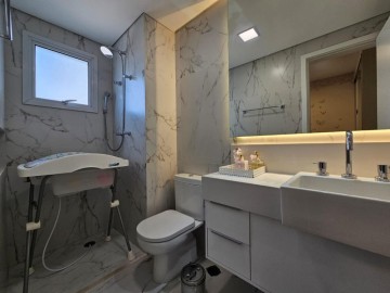 Imóvel com 132m² muito bem distribuídos, com ampla sala integrada ao terraço (terraço com fechamento em vidro e persiana), cozinha repleta de armários planejados, 3 suítes sendo a master com closet e ar condicionado!