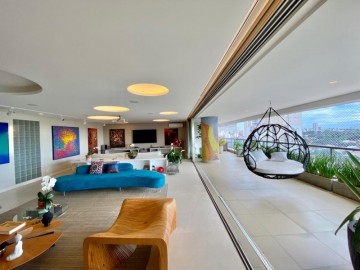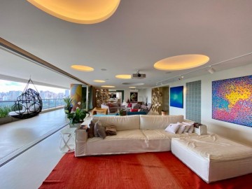 Apartamento com 485m² à venda no condomínio Altto Campo Belo. Amplo living e sala de jantar integrados ao terraço com uma vista deslumbrante pro verde do alto da boa vista, espaço gourmet, cozinha ampla e clean com despensa, área de serviço com dependência e banheiro de empregada, planta ótima com circulação íntima e 4 suítes, sendo a suíte master com closet e banheiro com finos acabamentos e ainda um escritório bem amplo e um quarto de brinquedos. O apartamento é uma joia no Campo Belo, possui acabamentos de muito bom gosto.