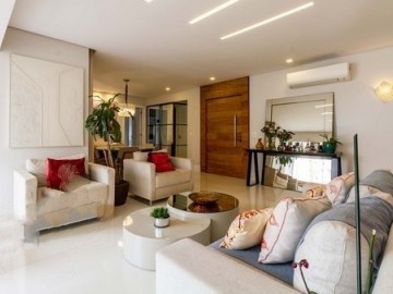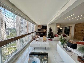 Apartamento com 163m², 3 suítes, livin ampliado, varanda gourmet com churrasqueira à carvão integrada à cozinha e sala, escritório, 3 vagas de garagem e depósito..