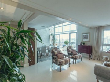 Apartamento duplex em andar alto com 216m² e 4 dormitórios à venda no condomínio Contemporâneo Campo Belo. Amplo living integrado à varanda com fechamento de vidro, pé direito duplo na sala e terraço e cozinha totalmente planejada. O imóvel está com finos acabamentos e repleto de armários. O condomínio oferece toda infraestrutura de lazer. Agende pra conhecer.