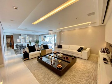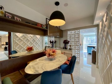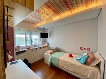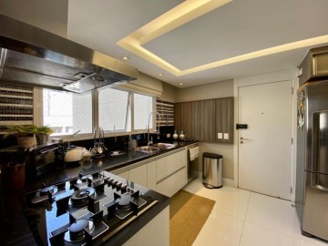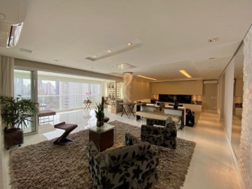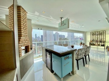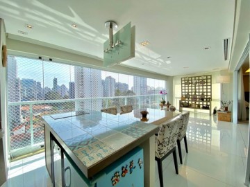 Apartamento com 258m² à venda no Condomínio Domani Brooklin. Living ampliado, 3 suítes, sala íntima, varanda gourmet com churrasqueira à carvão e forno de pizza (integrada à cozinha e sala). O imóvel está com finos acabamentos, repleto de armários e ar condicionado.