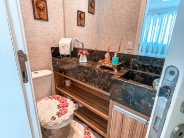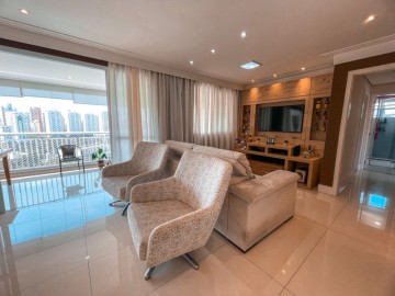 Imóvel com 138m² com ampla sala de 3 ambientes, terraço com churrasqueira a carvão, cozinha repleta de armários planejados, dormitório de funcionária (transformado em escritório) e 3 confortáveis suítes. O andar alto irá lhe proporcionar uma vista encantadora!