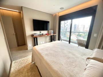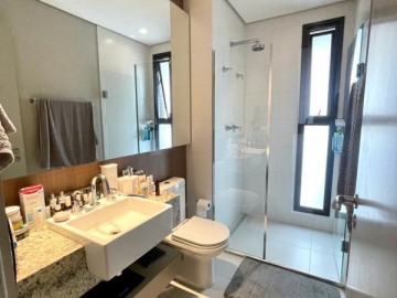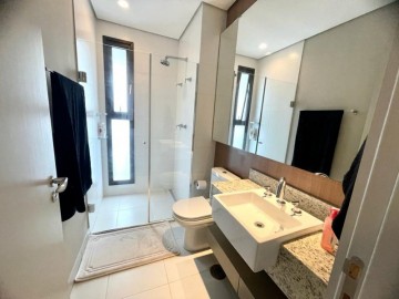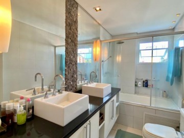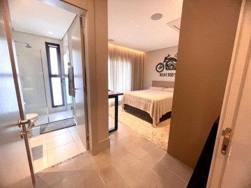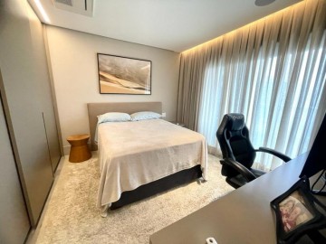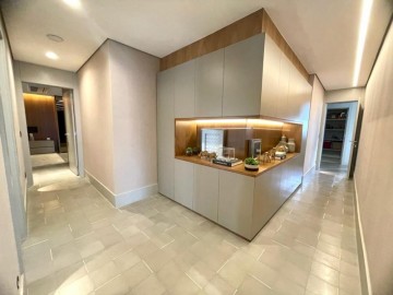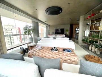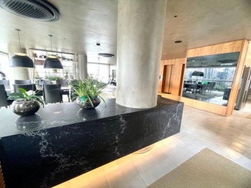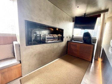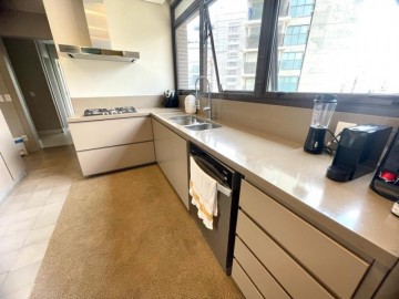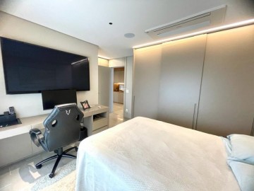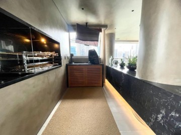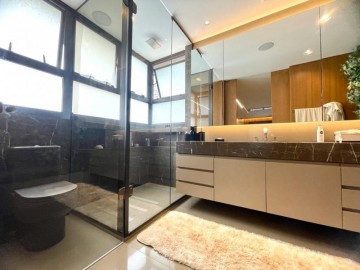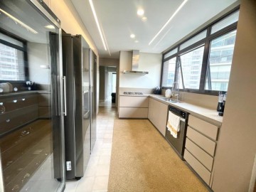 São 3 suítes, closet, hall privativo (com 2 elevadores), sala ampliada com área gourmet, circulação com armário, cozinha equipada, marcenaria com fino acabamento, copa, banheiro de serviço, área de serviço.