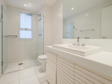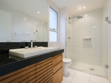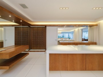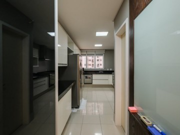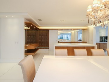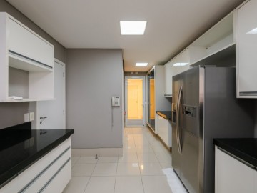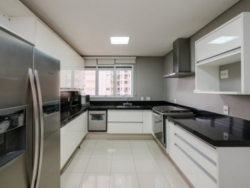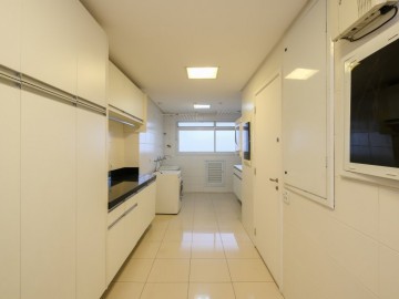 Moderna cozinha planejada, área de serviço, dependências de empregada e cinco vagas de garagem.