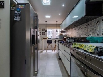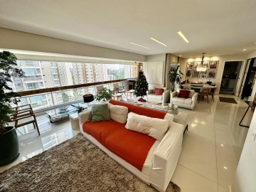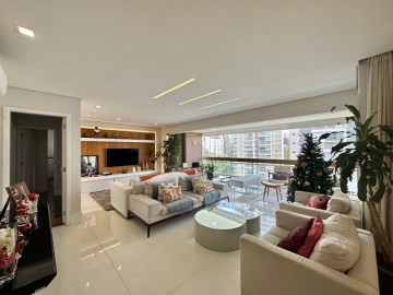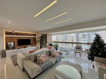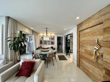 Apartamento com 163m², 3 suítes, livin ampliado, varanda gourmet com churrasqueira à carvão integrada à cozinha e sala, escritório, 3 vagas de garagem e depósito.