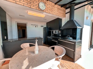 No piso superior temos uma confortável sala de tv, escritório, sauna, banheiro e espaço gourmet com churrasqueira e piscina!