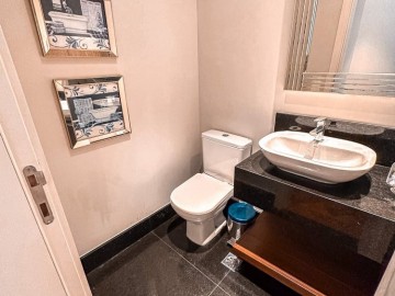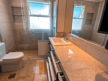 No piso inferior temos ampla sala para dois ambientes com um lindo terraço, copa e cozinha, área de serviço com despensa e banheiro de funcionário, lavabo e 3 confortáveis suítes!