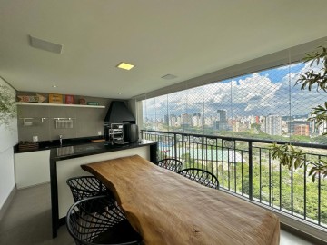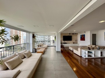Apartamento com 250m² e 4 suítes disponível pra venda no melhor do Panamby. Amplo living pra 3 ambientes, uma varanda bem espaçosa com churrasqueira à carvão integrada à sala, sala íntima usada como brinquedoteca, mas você pode usar como escritório etc. Cozinha planejada, suítes confortáveis e repletas de armários(toda marcenaria do apartamento foi feita pala SCA., finos acabamentos e 4 vagas de garagem + depósito. Condomínio bem desejado com uma excelente. infraestrutura de lazer na melhor loca integradalização do bairro e com uma vista incrível pra marginal.