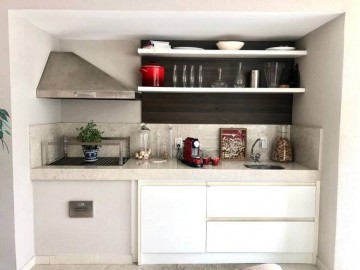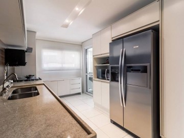A cozinha está completa e conta com eletrodomésticos de ultima geração e há também uma lavanderia equipada com lava-seca e armários.