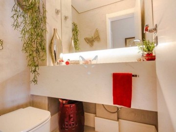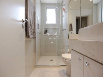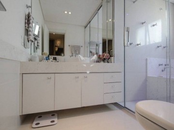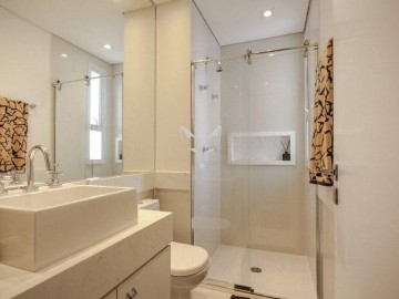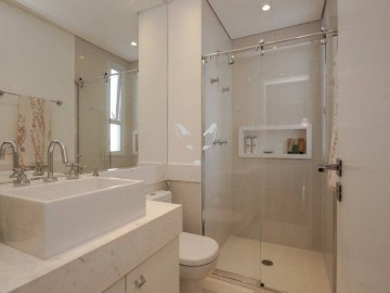 -Banheiros Sr e Sra em mámore piguês, boxes "sealed" (Mansur) e marcenaria de alta qualidade, sendo o banheiro Sra com banheira