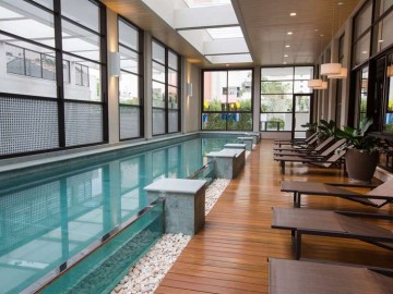 -Piscina interna de raia de 20 m, aquecida, borda de vidro Blindex