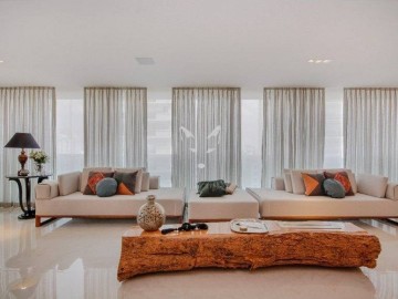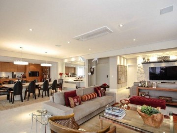 -Living ampliado pelas varandas, fechamento com vidro (Mansur), porcelanato branco, cortinas automatizadas, vista espetacular, 4 aparelhos de ar condicionado