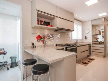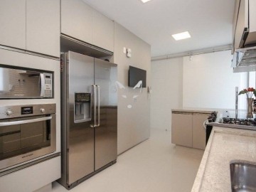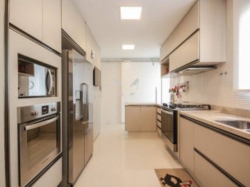 -Cozinha ampla, riqueza de armários planejados, e marcenaria de qualidade com vidro Reflecta, equipada com fornos, cook top e coifa Brastemp em perfeitos estados de conservação, triturador em uma das cubas