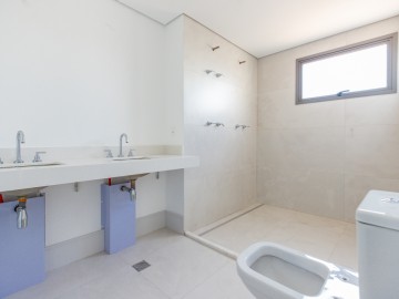 A área íntima conta com 4 suítes sendo a Suíte Master com terraço Privativo e banheiro com cuba e chuveiros duplos e closet, Banheiros com ventilação natural.