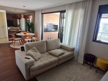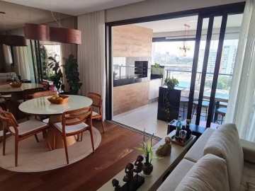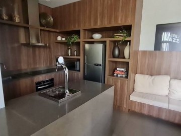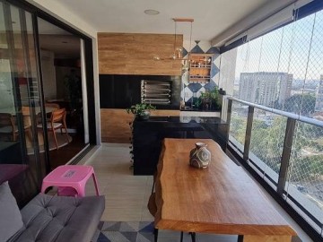 Com 101m2 bem distribuído com living compondo com a cozinha americana e a varanda gourmet, três ambientes em perfeita harmonia e com ar condicionado, com acabamentos de primeira linha, bastante armário na cozinha, varanda gourmet já com fechamento de vidro, um lavabo de apoio e área de serviço com varanda técnica.