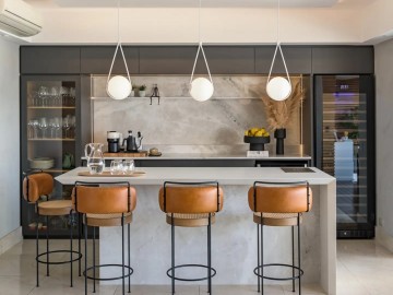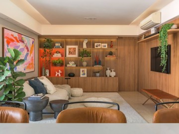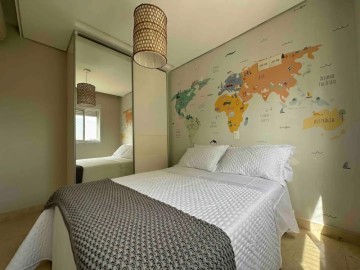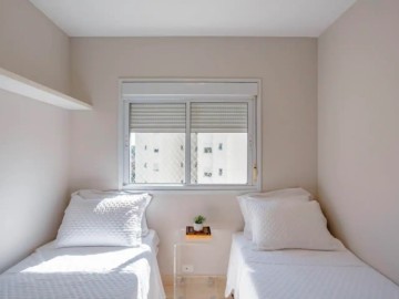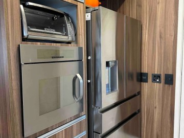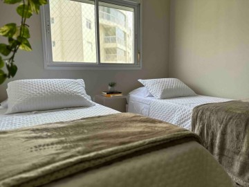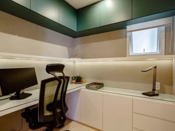 Todos os quartos possuem armários planejados e camas. Na sala Buffet em madeira com pintura laqueada na cor branca, armário embutido em madeira.