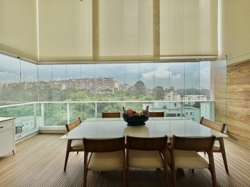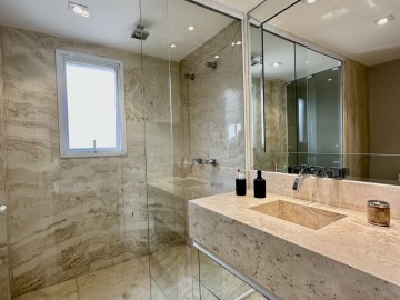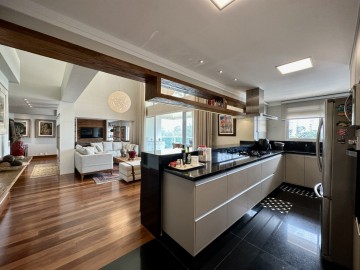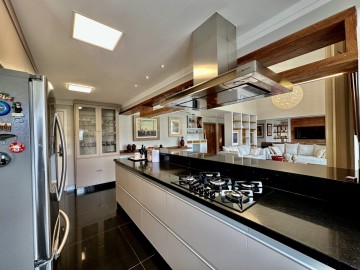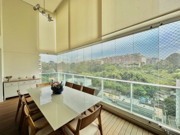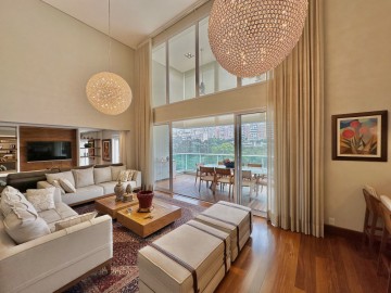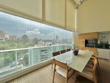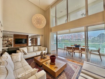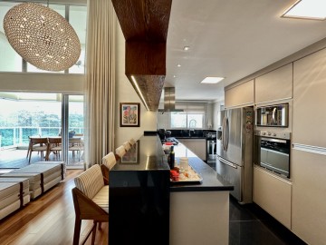 Muito bem distribuído, cozinha aberta para sala , integrando com sala de estar e TV, todo piso em madeira impecável, varanda gourmet com churrasqueira à carvão e vista para a Marginal, face norte, sol da manhã. As suítes com armários planejados, suíte master com amplo e organizado closet. Projeto iluminação em todos ambientes com teto em gesso. Cozinha finamente planejada. Hall social privativo. Dê este presente para sua família com quadra de tênis, piscina coberta aquecida e piscina externa com borda infinita, academia e lazer completo. Agende pra conhecer.