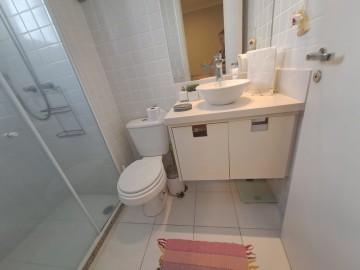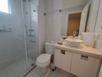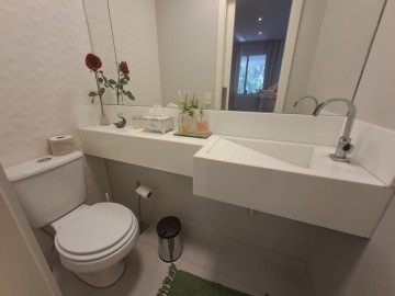 Imóvel amplo à venda com 3 quartos, sendo 3 suítes, e 4 banheiros no total. Este imóvel está bem equipado, é ideal para quem procura conforto e comodidade. A grande quantidade de janelas proporciona muita circulação de ar e a entrada de luz natural , com uma vista de frente mata ( vista eterna, área de preservação). Sol durante todo o dia. Ar condicionado em todos os quartos e sala ( ar quente e frio).