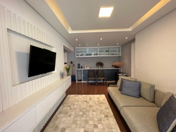 São 96m², 3 dormitórios (sendo 1 suíte), lavabo e 2 vagas de garagem.