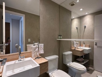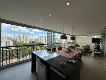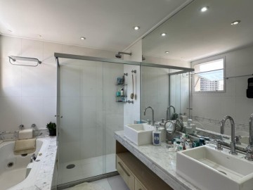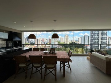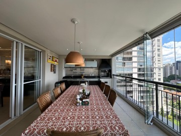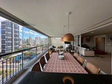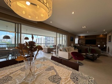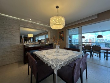 Apartamento com área de 223m², totalmente mobiliado e com excelente acabamento. Possui sala de 3 ambientes integrados, varanda gourmet com churrasqueira a carvão, e dois ambientes, ideal para momentos de lazer e confraternização. São 3 dormitórios, todos suítes, sendo a suíte master com closet, escritório e banheira de hidromassagem. O imóvel conta ainda com janelas antirruído nos quartos, armários planejados em todos os ambientes, persianas elétricas na varanda, e ar condicionado em todos os cômodos. Eletrodomésticos de primeira linha já instalados.