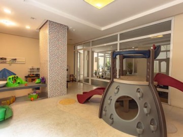 Lazer completo: Com grande piscina descoberta, piscina com raia coberta, academia com equipamentos Life Fitness, sauna seca e a vapor, brinquedoteca, playground, sala de jogos e TV, quadra infantil e salão de festas mobiliado e decorado.