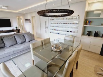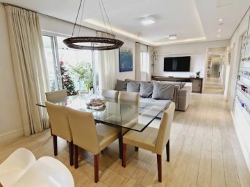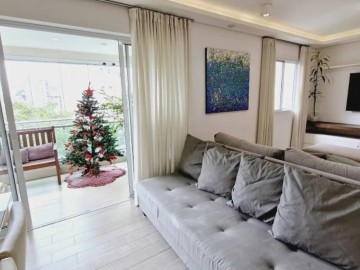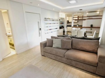 Apartamento à venda com área de 130 metros quadrados, possui 2 dormitórios (sendo 2 suítes), 4 banheiros no total, e 2 vagas de garagem