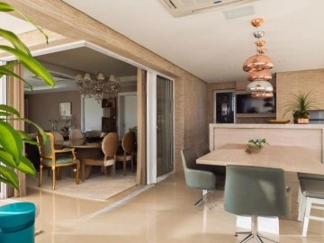Apartamento à venda com área de 185 metros quadrados, possui 3 dormitórios (sendo 3 suítes), 5 banheiros no total, e 3 vagas de garagem
