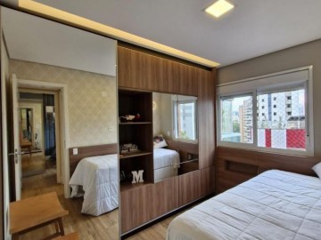 Apartamento à venda com área de 104 metros quadrados, possui 3 dormitórios (sendo 1 suíte), 2 banheiros, 2 vagas de garagem + depósito.