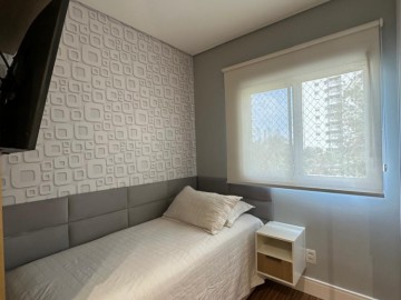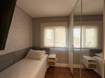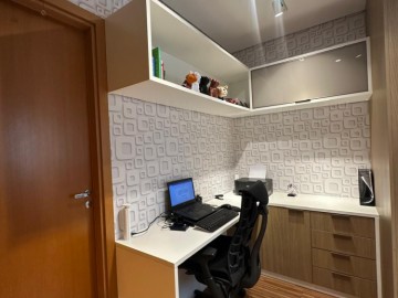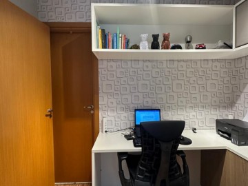 Condomínio com uma torre, extremamente bem cuidado, ambiente familiar, em região muito tranquila e silenciosa. Segurança completa na portaria com vistoria dos veículos na eclusa. Quadra poliesportiva, piscina, espaço pet, minimercado, playground, academia, salão de jogos, sauna, sala de estudos, salão de festas, churrasqueira e brinquedoteca. Disponibilidade de fibra óptica, acesso com biometria no prédio, portaria blindada.