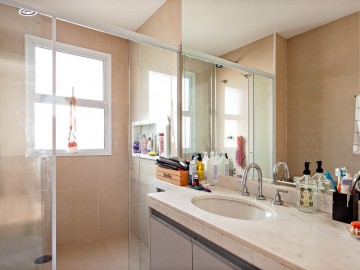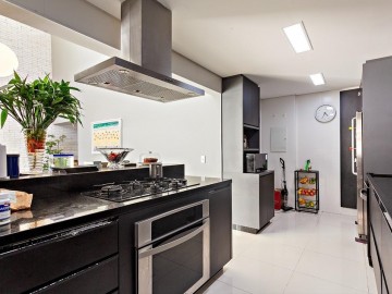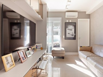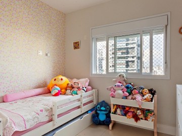 Esse apartamento em andar alto está localizado em um condomínio novo com lazer completo. A sala bem espaçosa possui pé direito duplo e varanda ensolarada. Há também uma sala íntima de televisão que pode ser utilizada como quarto de hospedes ou escritório. A cozinha é integrada à sala tornando o ambiente perfeito para receber amigos. Na área íntima são 4 dormitórios com 2 suítes. Há também lavabo, área de serviço, quarto e banheiro para funcionária. Os dormitórios, sala principal e sala de televisão possuem aparelhos de ar-condicionado.