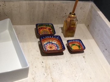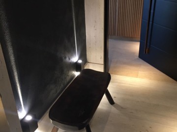 Hall elevador, lavabo e rack TV, em Travertino Romano. ..