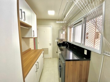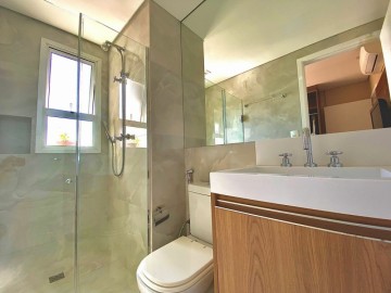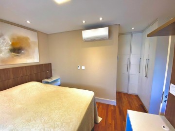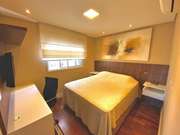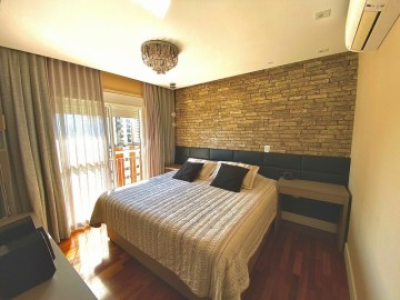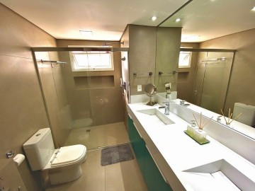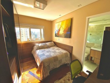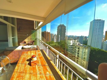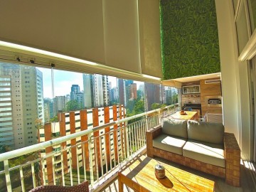 3 suítes, lavabo, varanda com churrasqueira instalada e fechamento de vidro com persianas automáticas