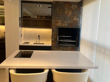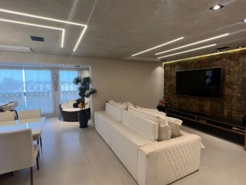Este lindo apartamento, com 130 m² recém-reformado, oferece um living amplo para 2 ambientes e com ar condicionado, proporcionando espaços de convívio acolhedores. O terraço gourmet, todo envidraçado e com churrasqueira, é um convite para desfrutar de momentos relaxantes e refeições ao ar livre. Na área íntima, são 3 suítes repletas de armários, garantindo conforto e privacidade a todos os moradores. A cozinha planejada e a lavanderia com banheiro para funcionários garantem praticidade no dia a dia.