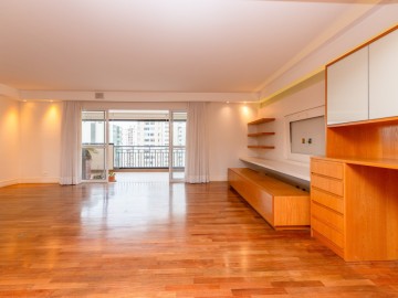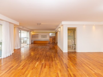 Hall social privativo, espaçoso living (estar, jantar e home theater), lavabo, piso em madeira.