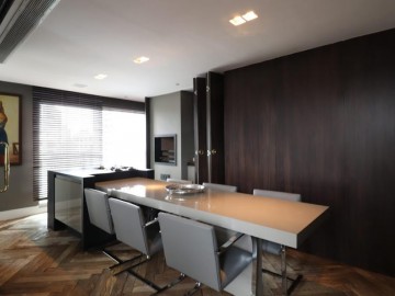 Maravilhoso apartamento com design de interiores premiado do arquiteto Maurício Karam, na melhor localização do Panamby: ao lado do Parque Burle Marx. Logo na entrada, raro e imponente pé-direito de 7 metros no amplo living e privilegiado skyline da cidade. O projeto clássico com elementos contemporâneos garantem a este apartamento estilo e luxo. Conta com 4 suítes sendo a master com banheiro Sr. e Sra., área gourmet, piso em madeira de demolição ebanizada, armários Ornare, cozinha completa Elgin, sistema de emergência próprio de queda de energia, porta blindada na área de serviço e entrada social com digital, ar-condicionado central, sistema de som por caixas em todo o apartamento.